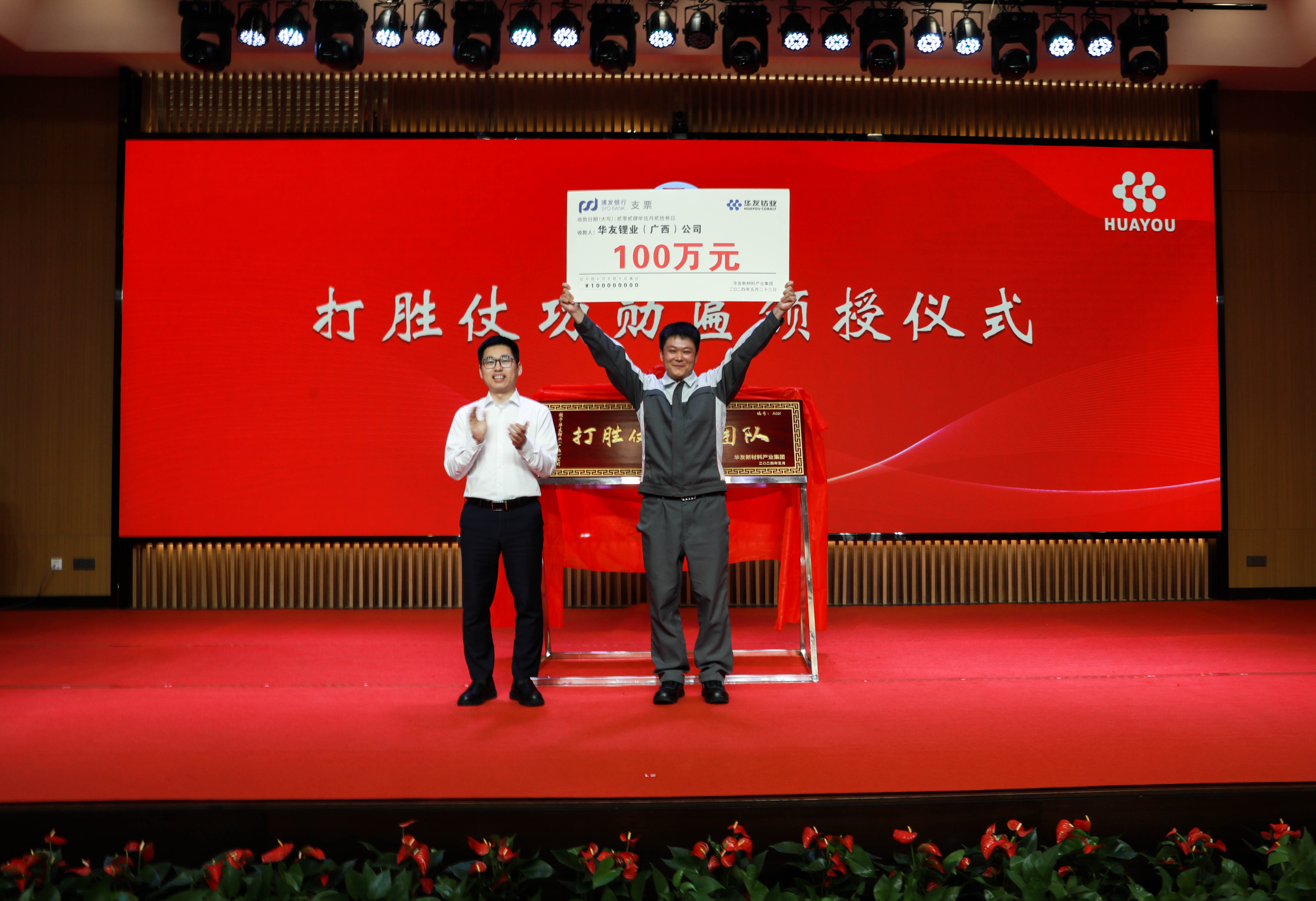 为持续推进新材料产业集团“打胜仗”文化建设,徐伟向华友锂业颁发了新材料产业集团首块编号为A001的“打胜仗英模团队”牌匾,并以一百万重奖“打胜仗英模团队”。