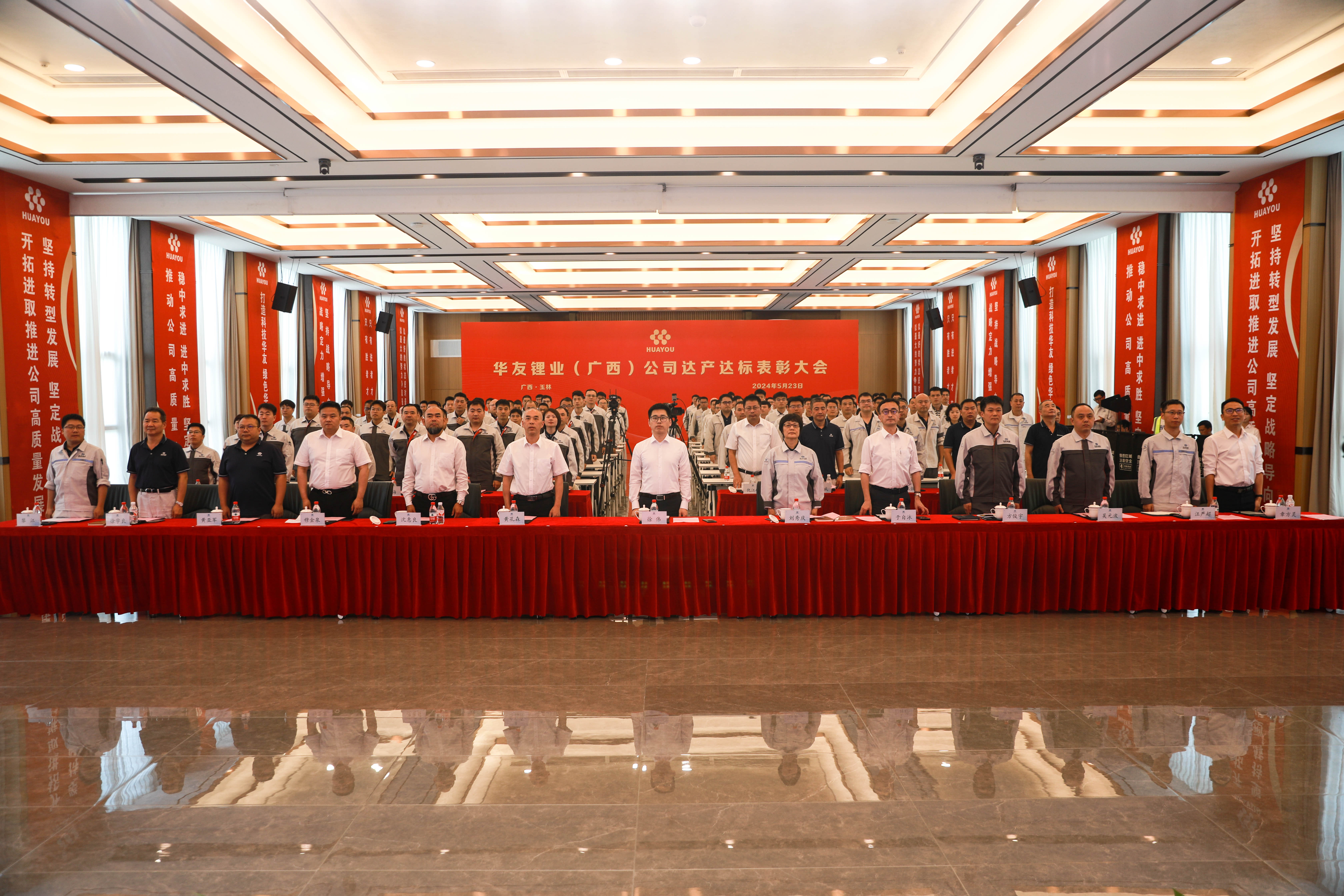 5月23日,华友锂业(广西)公司(下称华友锂业)碳酸锂达产达标表彰大会在新材料广西基地圆满召开。大会回顾了锂盐项目自建设、投产以来的发展历程,特别是在碳酸锂产线按期实现系统性达产达标方面所取得的突破性进展和标志性成果,隆重表彰了在碳酸锂产线实现系统性达产达标过程中涌现的先进集体、先进个人,充分昂扬了新材料产业集团全体干部员工决战决胜年度目标任务的奋进精神。